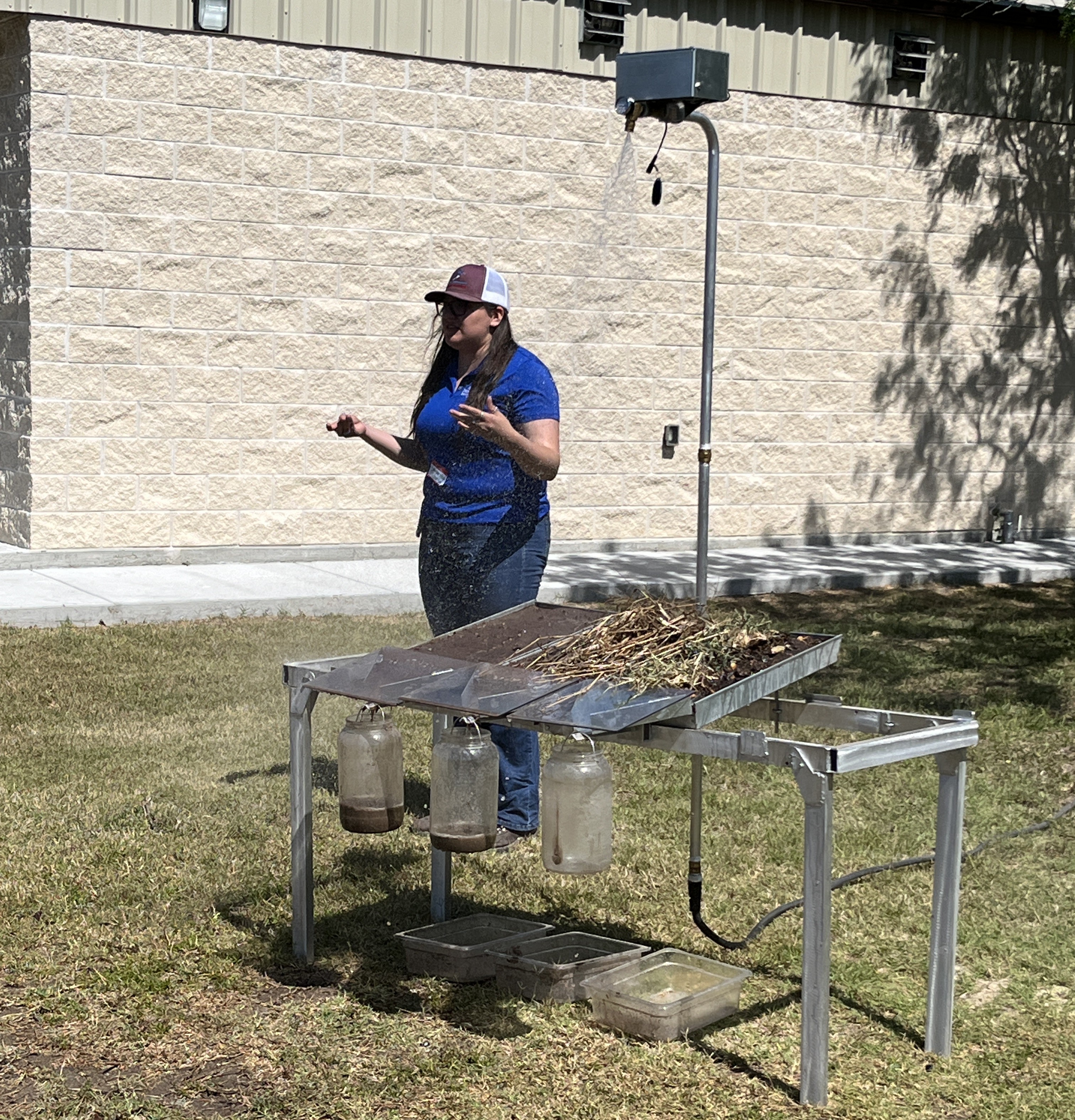 The large scale rainfall simulator helps people visualize and how land stewardship influences runoff or infiltration. People will understand how land management practices (plant residues, native plants, bare soil, etc.) impact our soil and water resources.