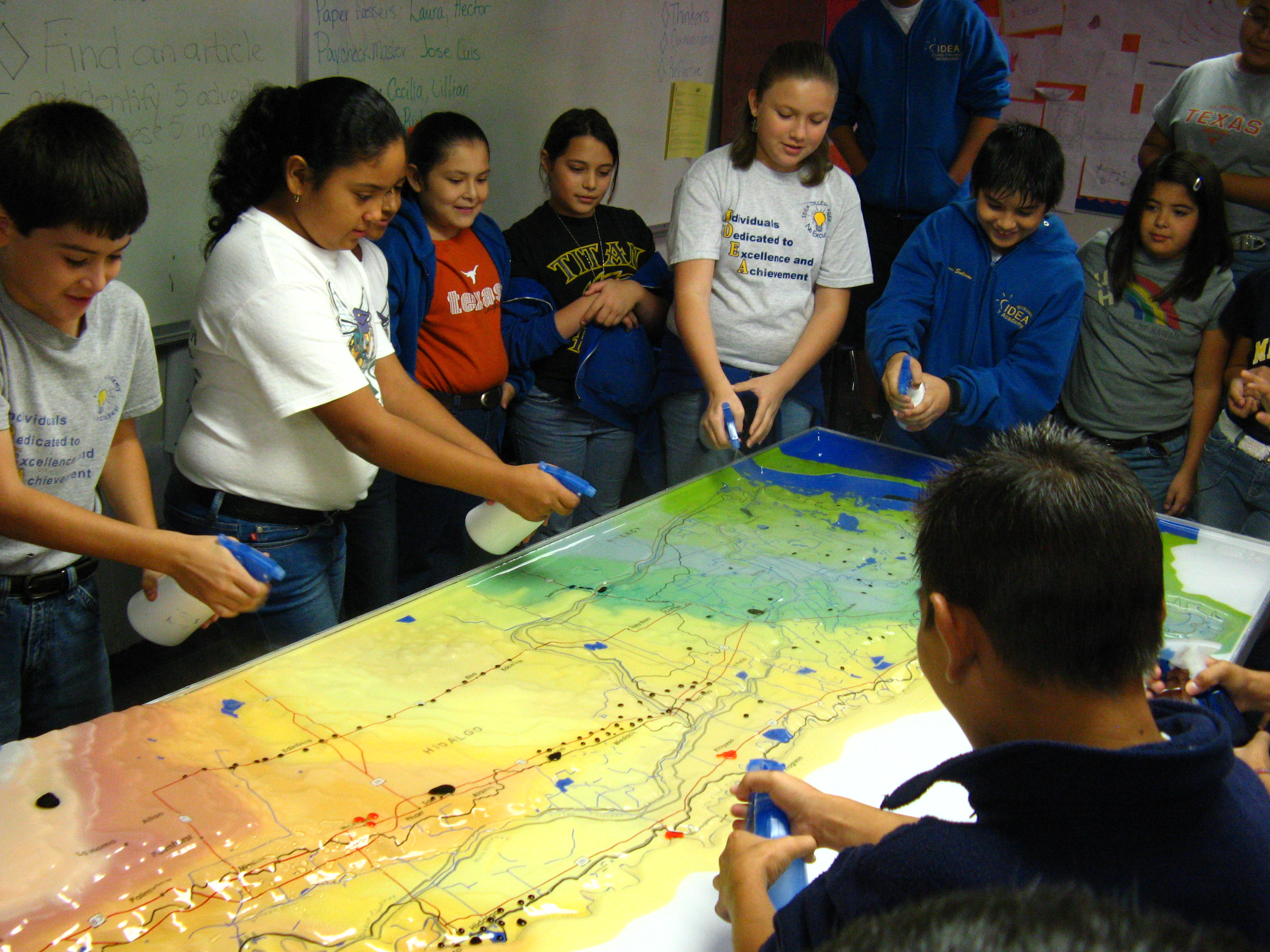 A plastic relief model of the Arroyo Colorado watershed and portions of the South Laguna Madre HUC was built to help educate people about the watershed and the geography of the Cameron, Hidalgo and Willacy Counties. The physical watershed model of the Arroyo Colorado was funded by the Nueces River Authority through the Clean Rivers Program. It is on permanent loan to the Arroyo Colorado Watershed Partnership and is available to all Partners. This 3' x 7' model of the Arroyo Colorado is made of tough durable plastic with a metal frame and used to educate people about watershed function and how nonpoint source pollution occurs.